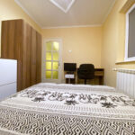 Szoba hasznos alapterülete: kb. 12 nm | Felszereltség: szekrények, íróasztal, TV |