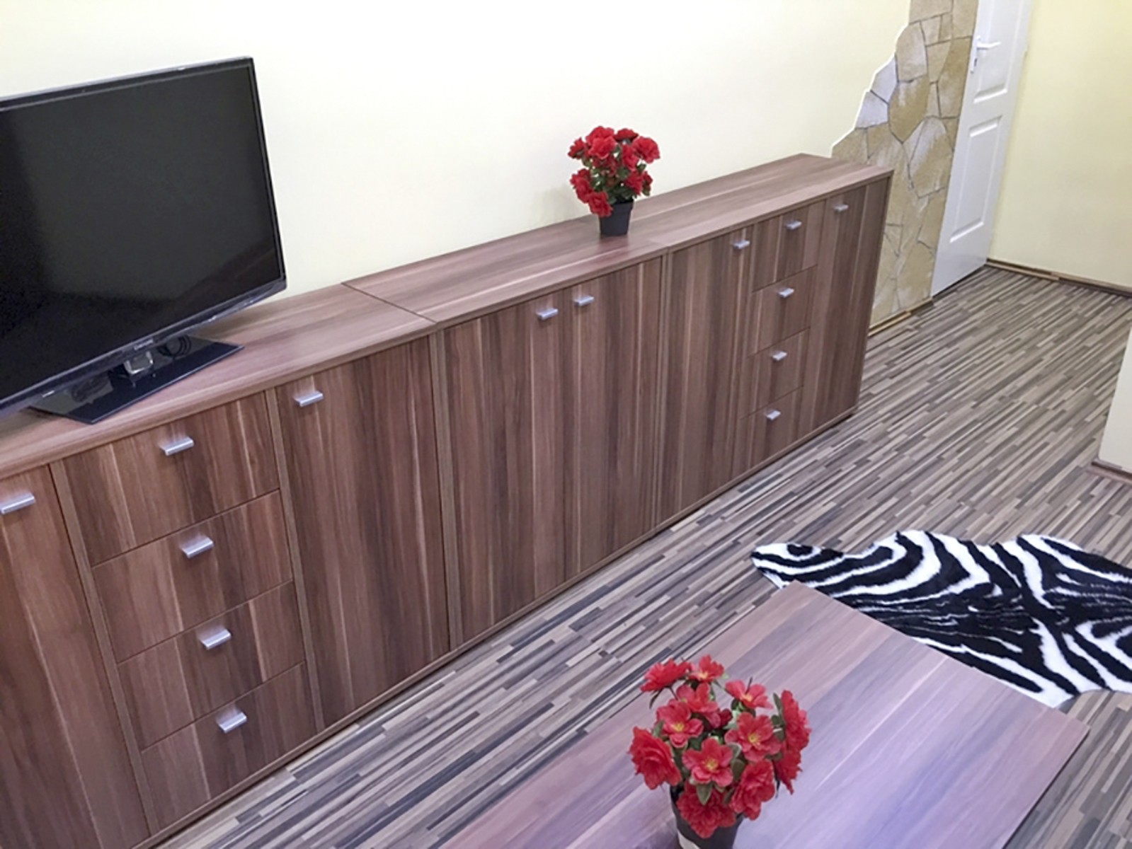 Szoba hasznos alapterülete: kb. 13 nm | Felszereltség: szekrények, TV |