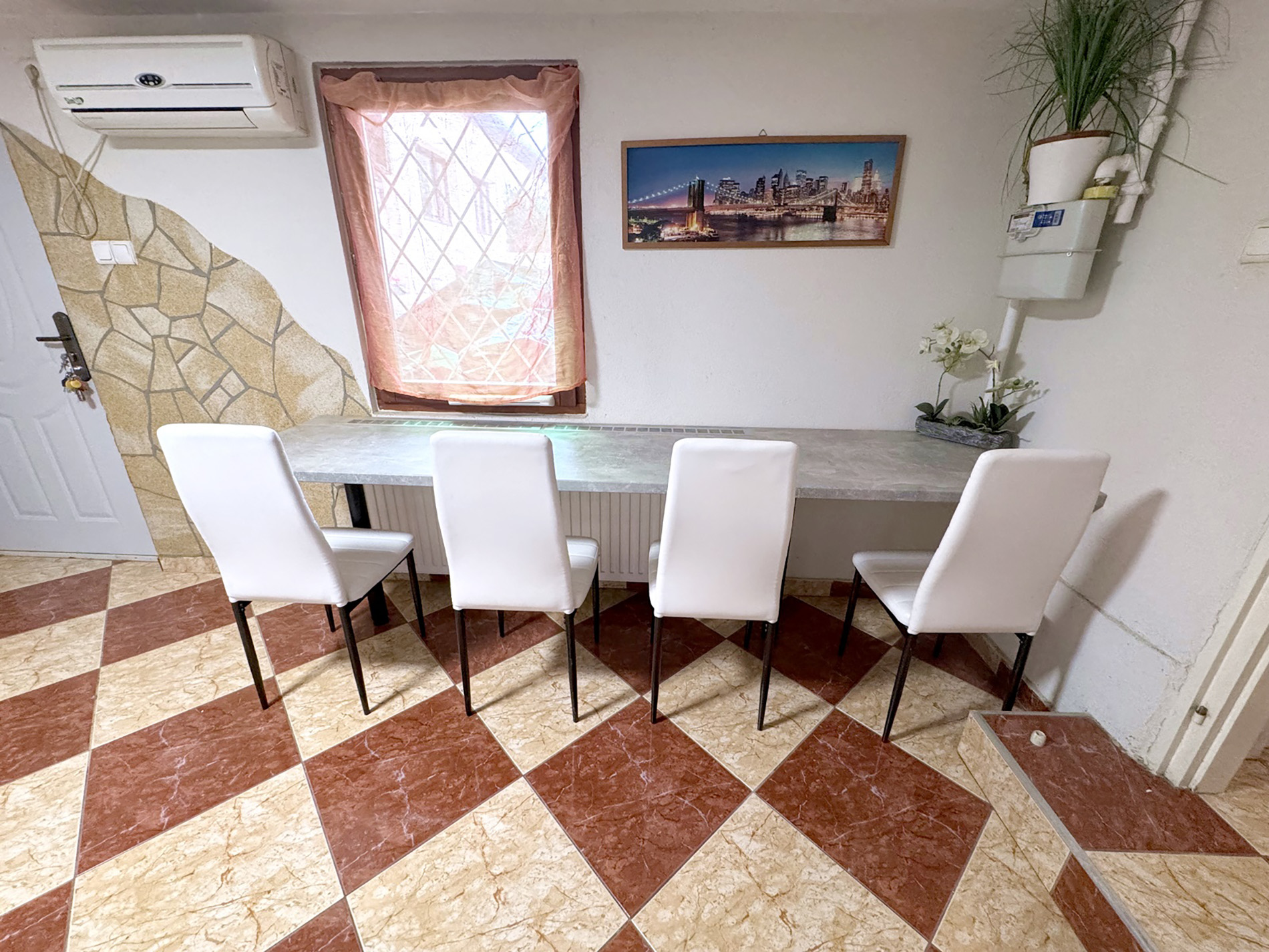 Az összesen 3 különnyíló szobás nagyobb ingatlan pedig teljesen, minden igényt kielégítően gépesített. Megtalálható benne gáztűzhely, sütő, mikró, mosógép, 2 méter magas kombi hűtőszekrény, mosogatógép, edények, poharak, evőeszköz stb). A bérlők biztonságát az ablakon és a bejárati ajtón is vasrács védi, ha kedves ügyfelünk dolgozni vagy iskolába indul.